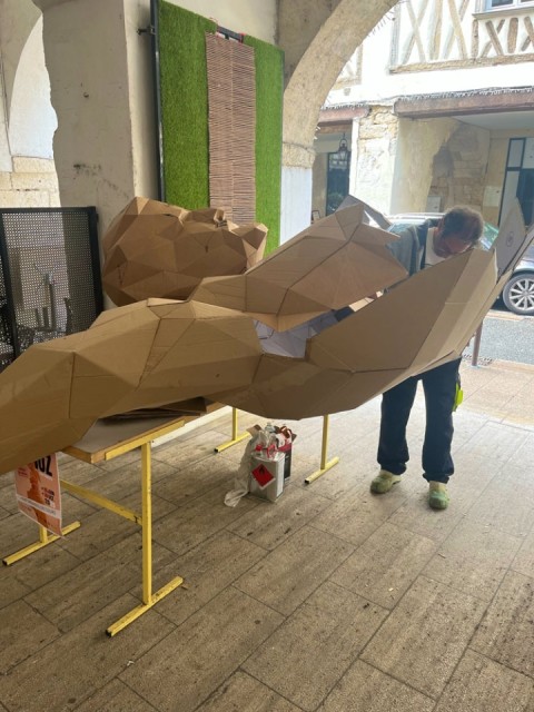 Il fabrique des sculptures, du mobilier et des objets en carton recyclé.
