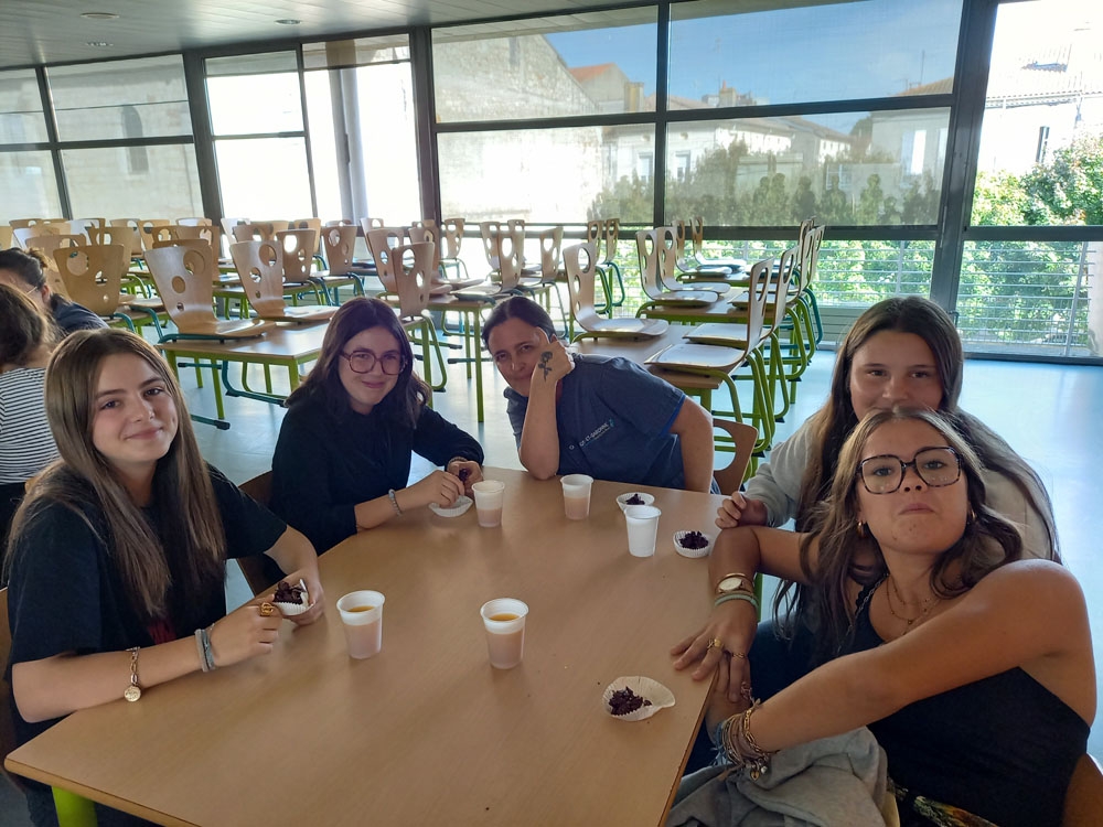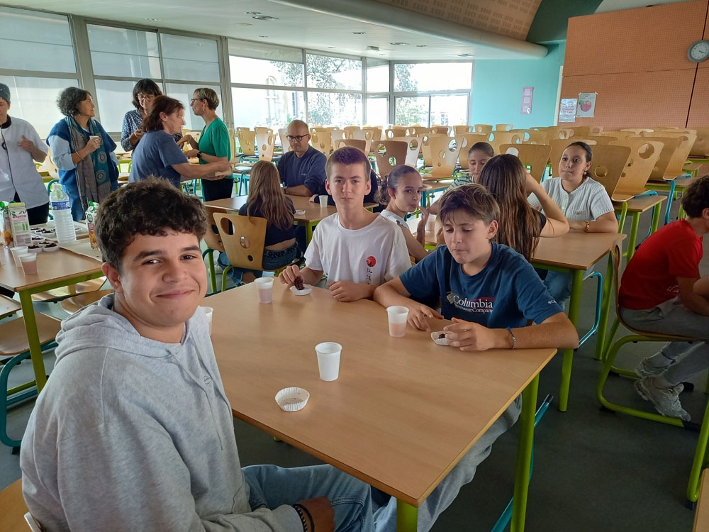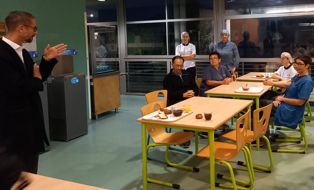 23 septembre : au petit-déjeuner, rencontre avec les agents du matin qui travaillent à l'entretien des locaux et en cuisine, en présence de notre Principal M. Valière.