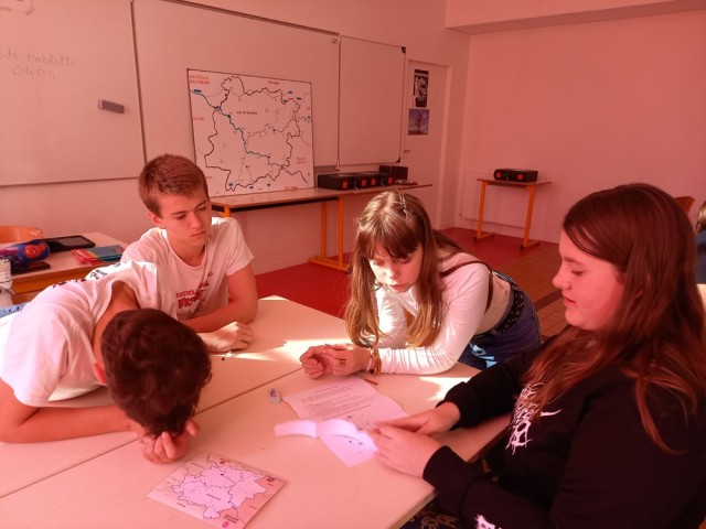 14 octobre : un jeu collaboratif créé et animé par Juliette Alet, fondatrice du site et de la structure des "Petits curieux" qui ouvre jeunes et familles à la culture et au patrimoine. Entre énigmes, codes, blasons et coffres au trésor, les internes ont fait le tour du Lot-et-Garonne dans une ambiance rosée du fait du soleil traversant les stores de la salle !