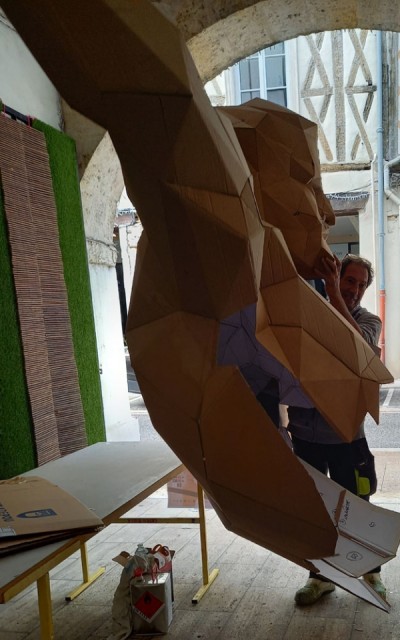 Il fabrique des sculptures, du mobilier et des objets en carton recyclé.