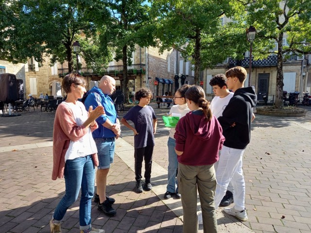 Mardi 24 septembre, Alexandra Dibon, coordinatrice et médiatrice culturelle, a rejoint les internes au collège pour leur présenter le rallye autour du thème "Le végétal dans la ville". Le départ s'est fait devant la mairie, où chaque équipe a découvert la carte du parcours et les points attribués à chaque question. Il a fallu décider d'une stratégie pour accumuler les bonnes réponses et les bonus.