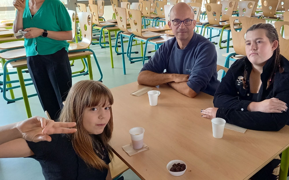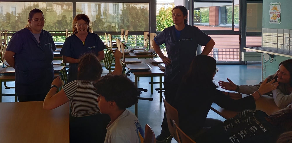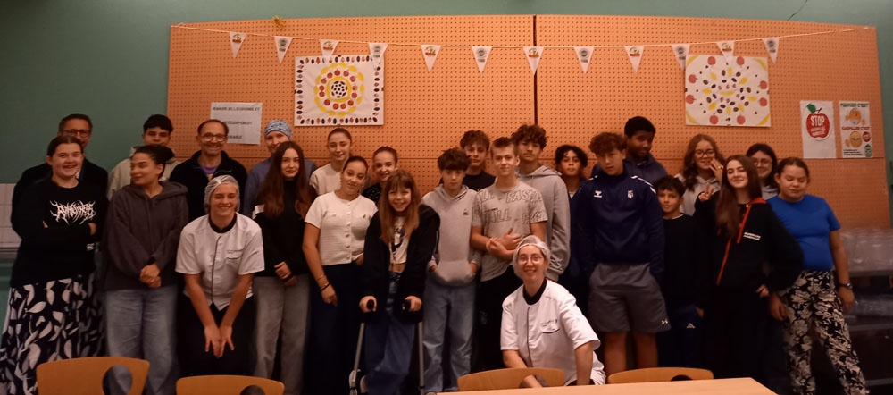 23 septembre : au petit-déjeuner, rencontre avec les agents du matin qui travaillent à l'entretien des locaux et en cuisine, en présence de notre Principal M. Valière.